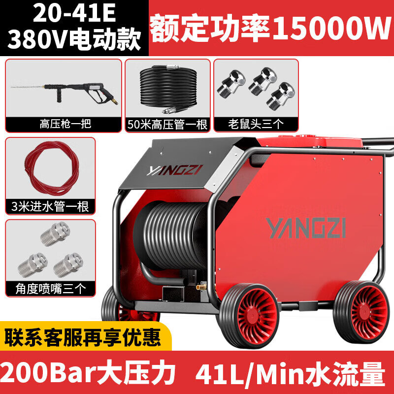 揚(yáng)子YZ-20-41E電動(dòng)管道疏通機(jī)疏通+清洗,一機(jī)在手清潔無憂;380V工業(yè)電使用作業(yè)有保障,2種接頭可選配針對(duì)不同沖洗種類,不同環(huán)境不同選擇。