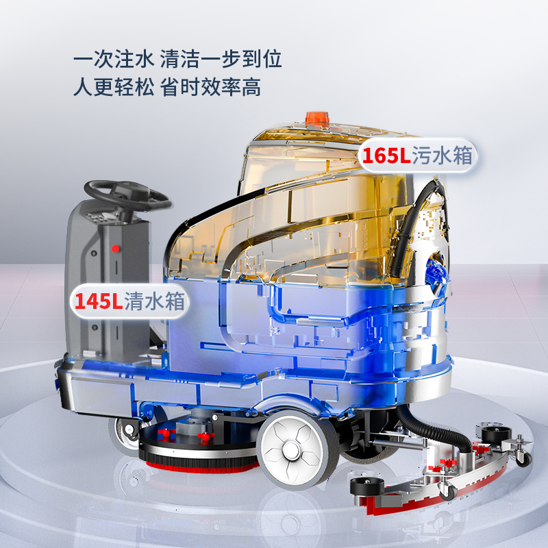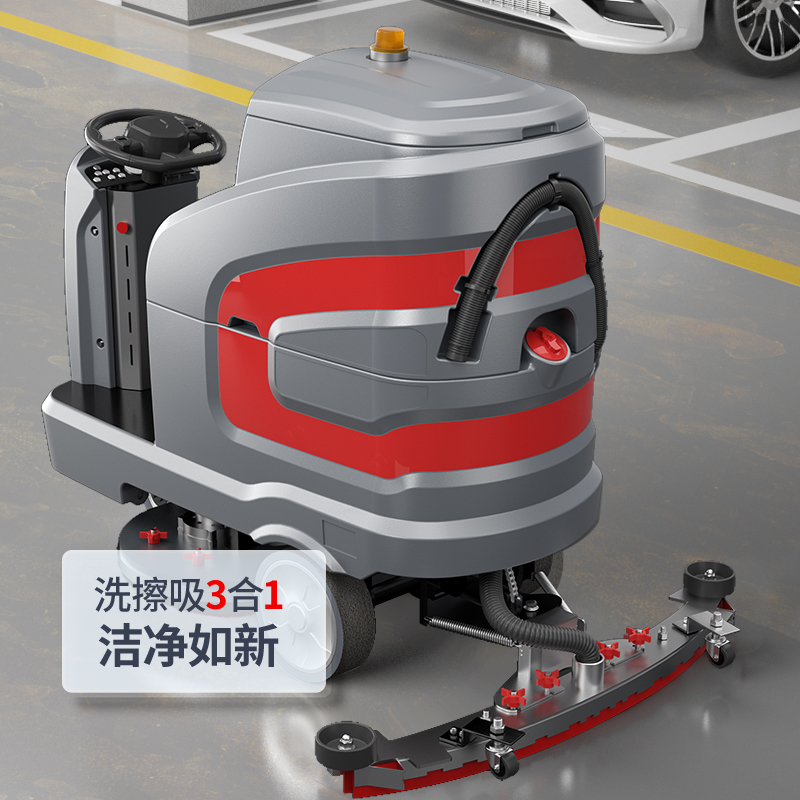 揚子X7電動駕駛式洗地機的清洗操作面板一目了然,操作更加簡單快捷,配備了橡膠大滾輪,摩擦力更大,避免了操作過程中打滑的問題,更加安全。